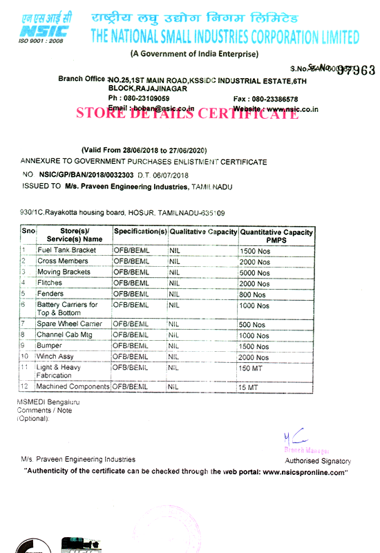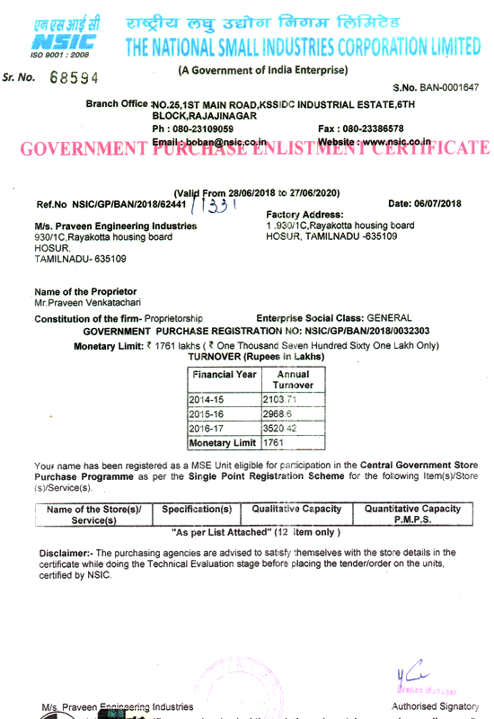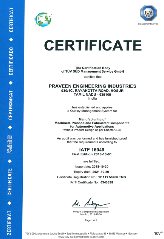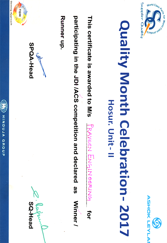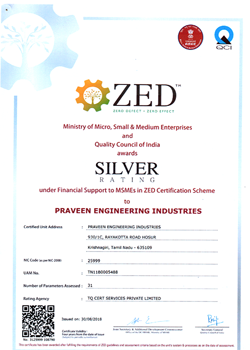 In the year 1998, Praveen engineering was registered with SSI, TIN, CST, Central Excise and availed the opportunities of manufacturing the components with MODVAT to all customers. Praveen Engineering certified as an ISO 9001 company in 2002 continuously upgrades its quality version. We are manufacturing more than 850 part numbers supplied to various customer. Recently, the company has grown into a corporate sector as Praveen Engineering Products India Pvt. Ltd.