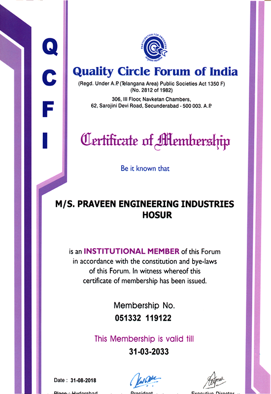 We at Praveen Engineering Products India Pvt. Ltd are committed to achieve total customer satisfaction by Supplying Quality Products to our customer on time. We achieve this through the involvement of Employees and utilization of their skills and continual improvement in the process and products.