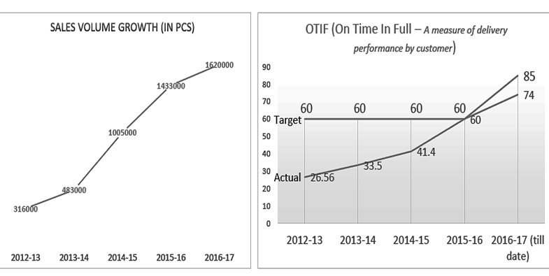 - To achieve a turnover of Rs. 100 crores withOTIF over 90% and at less than 100 PPM.