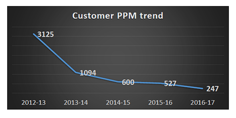 Despite a tremendous increase in volume and new products, PEI has consistently reduced PPM through a systematic approach.
